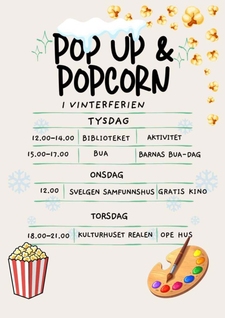 Verkstaden er tysdag 17. februar frå 12:00 til 14:00 og er del av aktivitetstilbodet til barn og unge i ferien.